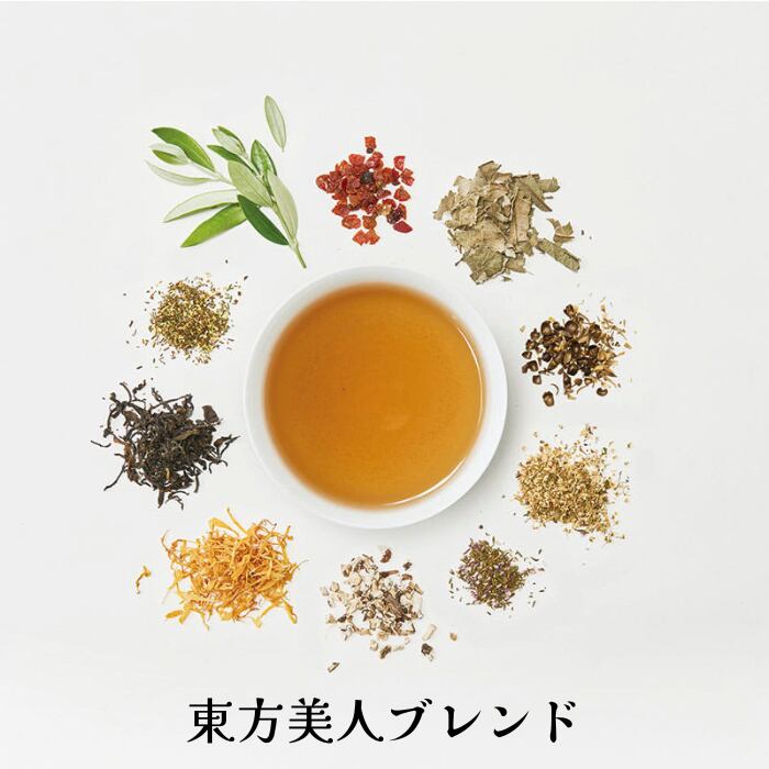 東方美人ブレンドには東方美人やルイボスグリーン、月見草など16種類のハーブを配合しています。