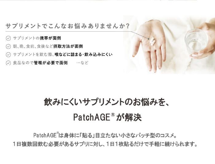 PatchAGE®︎は米国のドクターが患者にお薦めする身体に「貼る」目立たない小さなパッチ型のコスメ。