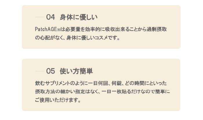 ●PatchAGE®︎に含まれる成分の容量は健康な成人のみに適しています。