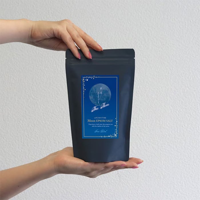「ムーンエプソムソルト」は、月のリズムをイメージした天然精油のブレンドオイルで香りをつけたエプソムソルト。
